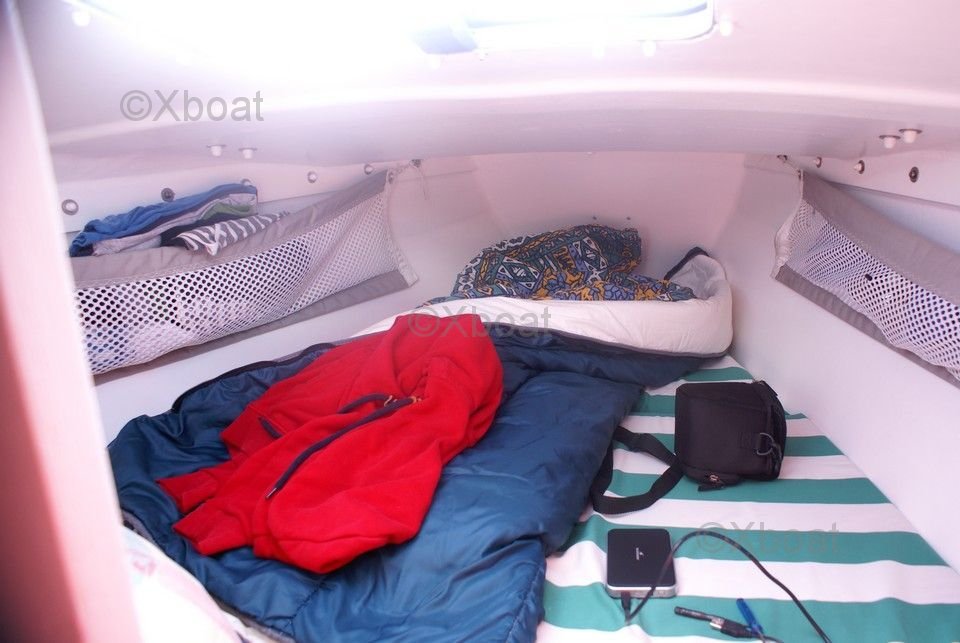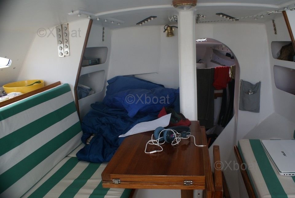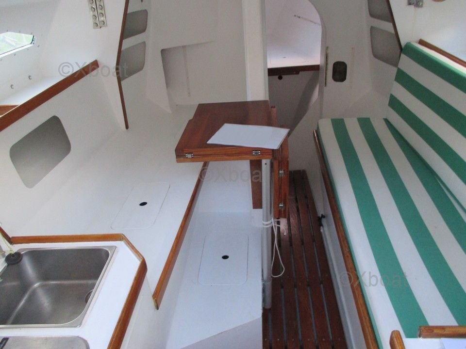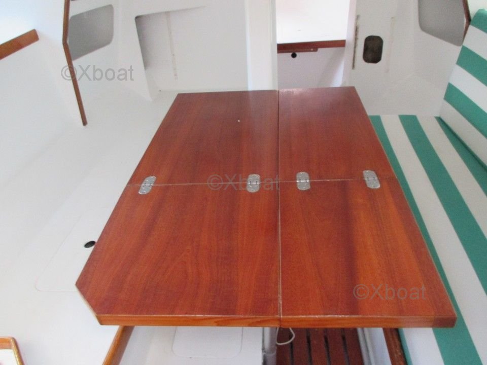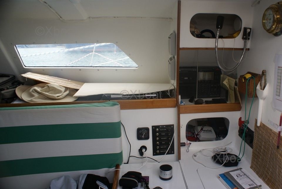 À l'intérieur, le trimaran dispose d'un espace de vie confortable avec une cuisine équipée, des couchettes spacieuses et des rangements astucieux. Le cockpit est large et ergonomique, offrant une protection contre les intempéries et un espace de navigation convivial.