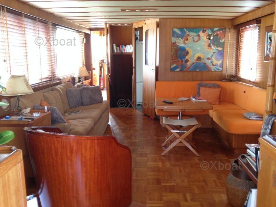 Intérieur : L'intérieur est spacieux et bien conçu, avec des aménagements de haute qualité. Il comprend généralement trois cabines doubles, une salle de bains complète, une cuisine bien équipée et un salon confortable. Les finitions en bois précieux ajoutent une touche de luxe à l'ambiance intérieure.