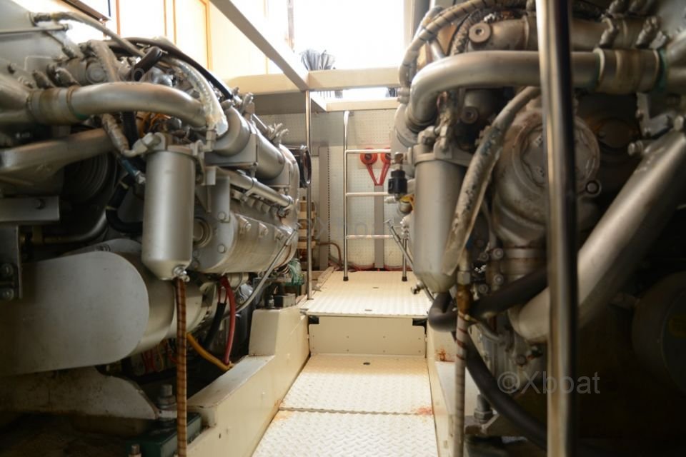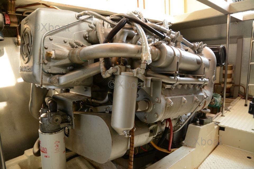 Le Aquarius 555 est équipé de moteurs diesel puissants, offrant une vitesse de croisière confortable et une autonomie impressionnante. Les moteurs sont couplés à des hélices à pas variable, permettant une man?uvrabilité optimale et une consommation de carburant réduite.