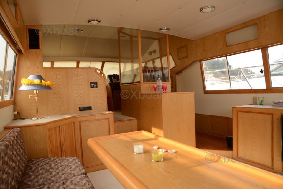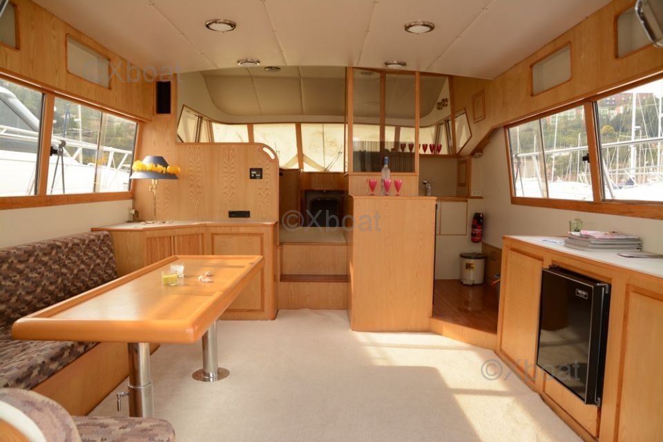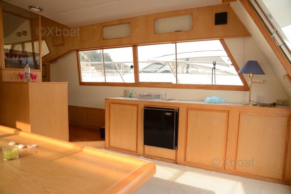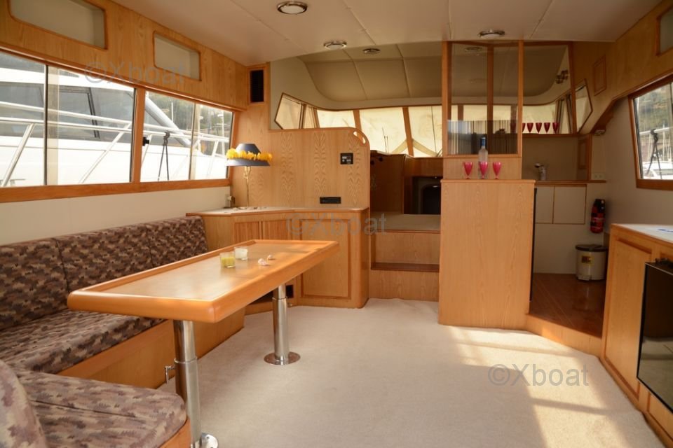 Le pont supérieur est un véritable espace de détente, avec des sièges confortables, un bar extérieur et un espace de bronzage. Le système de navigation est de dernière génération, avec des écrans tactiles, un radar, un GPS et un sonar pour une navigation en toute sécurité.