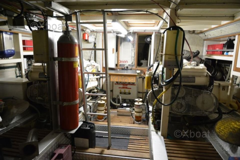 Motorisation : Équipé de moteurs diesel de marque Caterpillar ou Yanmar, le Grand Banks 49 peut atteindre une vitesse de croisière de 20 n?uds et une vitesse maximale de 25 n?uds, garantissant une navigation fluide et efficace.