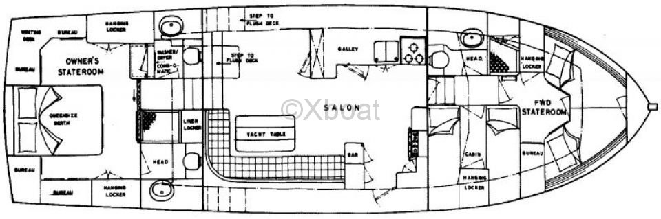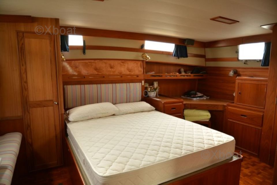 Dimensions et Capacité : Le Grand Banks 49 mesure environ 14,94 mètres de longueur hors tout et 4,32 mètres de largeur. Il offre une capacité de carburant de 3 000 litres et une capacité d'eau douce de 900 litres, permettant des voyages prolongés sans ravitailler fréquemment.