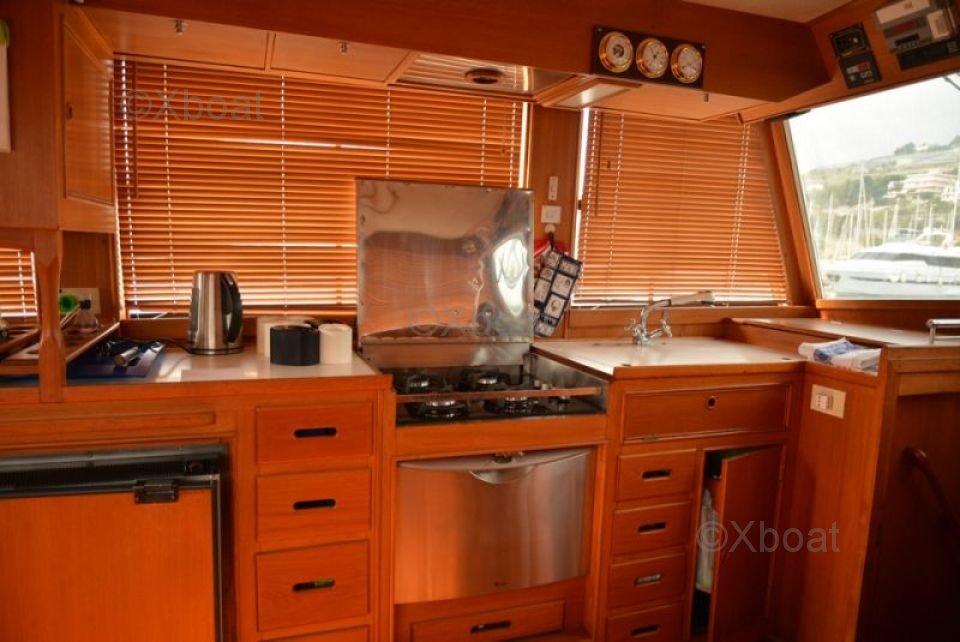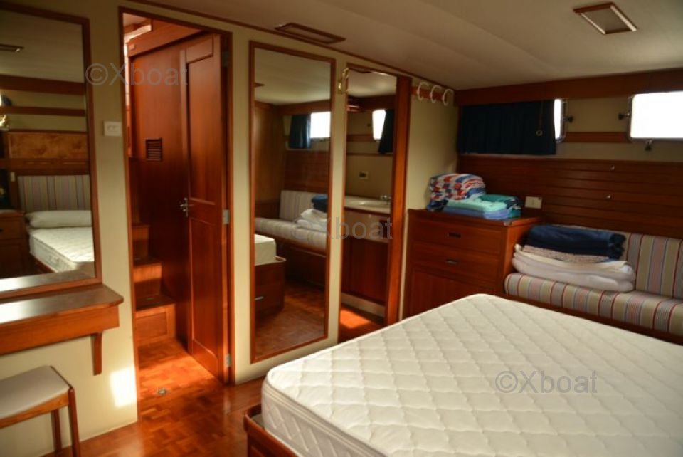 Sécurité et Confort : Le Grand Banks 49 est conçu avec des normes de sécurité élevées, incluant des systèmes de détection de fumée et de gaz, ainsi que des extincteurs automatisés. Le confort est assuré par une isolation phonique et thermique, ainsi qu'un système de chauffage centralisé.