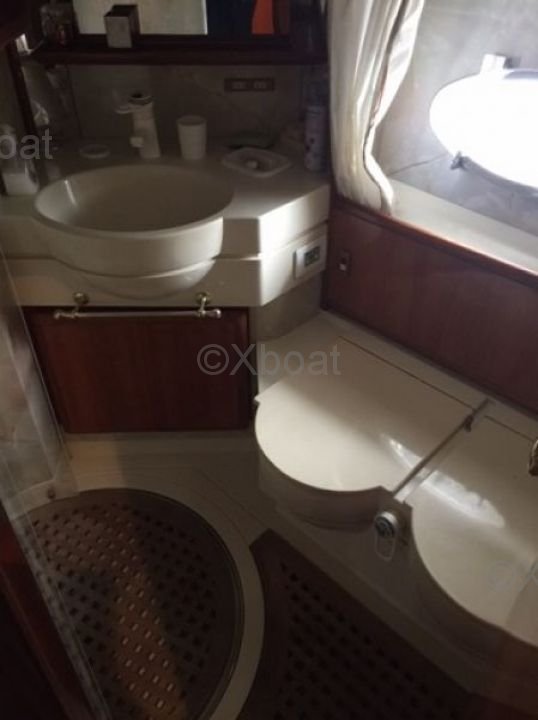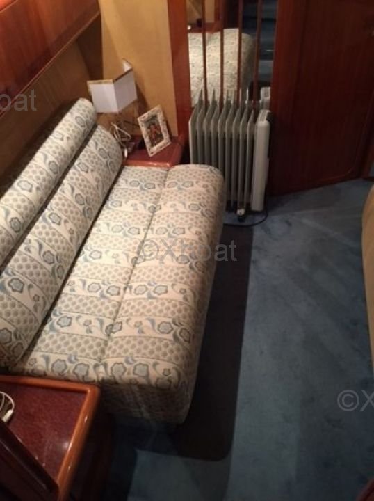 Intérieur et confort : L'intérieur du 58 C est spacieux et luxueux, avec des finitions en bois précieux et des matériaux de haute qualité. Il dispose de trois cabines, chacune équipée de lits doubles et de salles de bain privatives. Le salon principal est lumineux et offre une vue imprenable sur l'horizon grâce à ses grandes baies vitrées.