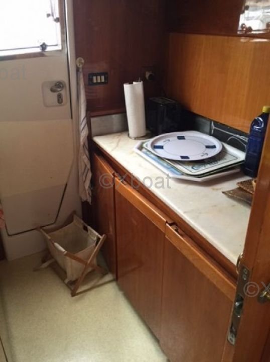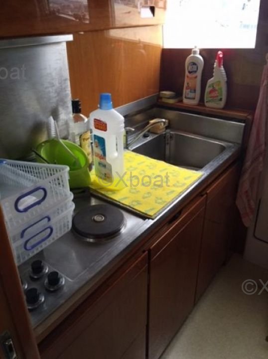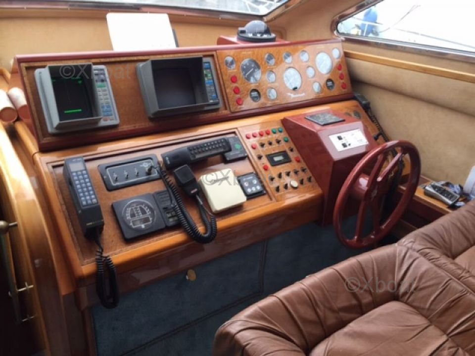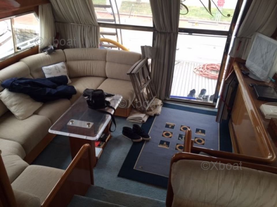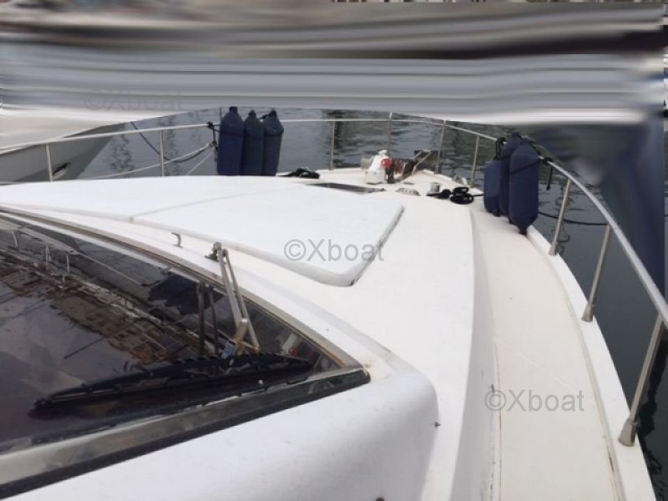 Extérieur : Le pont principal est vaste et offre plusieurs zones de détente, y compris un espace de bain de soleil à l'avant et un coin repas à l'arrière. Le flybridge est équipé d'un poste de pilotage supplémentaire et d'un espace de détente, parfait pour les soirées sous les étoiles.