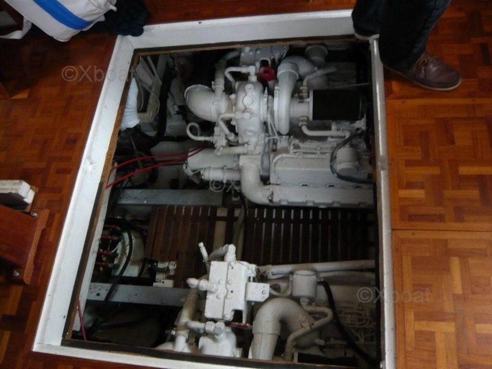 Moteurs : Le Grand Banks 42 est généralement équipé de moteurs diesel, souvent des Cummins ou des Detroit Diesel, offrant une puissance totale de 370 chevaux (276 kW). Ces moteurs sont connus pour leur durabilité et leur efficacité énergétique.