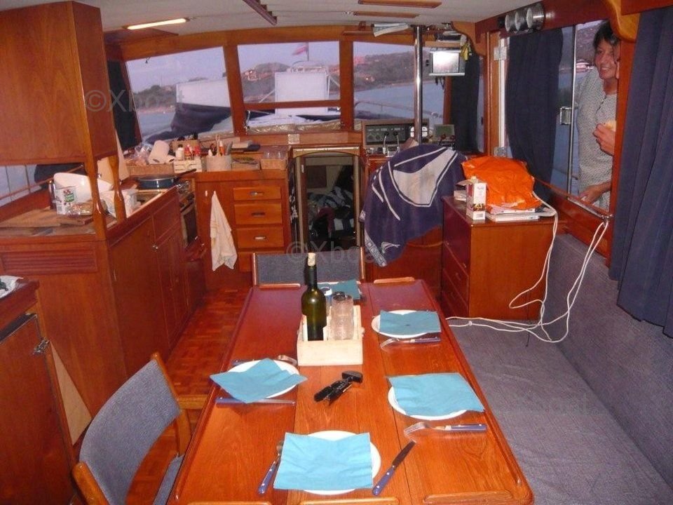Aménagement intérieur : L'intérieur du Grand Banks 42 est conçu pour offrir un confort maximal. Il comprend généralement trois cabines, deux salles de bain, une cuisine bien équipée et un salon spacieux. Les matériaux utilisés sont de haute qualité, assurant une durabilité et une esthétique élégantes.