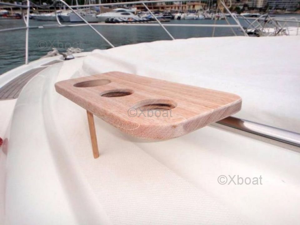 Équipements : Le Cranchi 43 Méditerranée est équipé de nombreuses options de confort et de sécurité, telles qu'un système de navigation GPS, un radar, un sonar, des instruments de bord modernes, et un système de climatisation. Les équipements de sécurité incluent des gilets de sauvetage, des extincteurs, et un système de détection d'incendie.