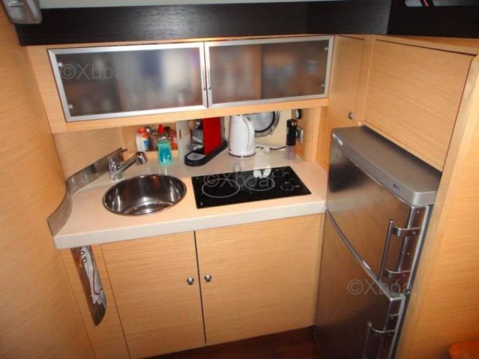 Aménagement intérieur : L'intérieur du bateau est spacieux et lumineux, avec des finitions de haute qualité. Il dispose de trois cabines, dont une suite propriétaire à l'avant, offrant un espace de vie confortable. La cuisine est bien équipée, et le salon est conçu pour maximiser le confort et l'espace de vie. Les matériaux utilisés sont durables et esthétiques, offrant une ambiance chaleureuse et accueillante.