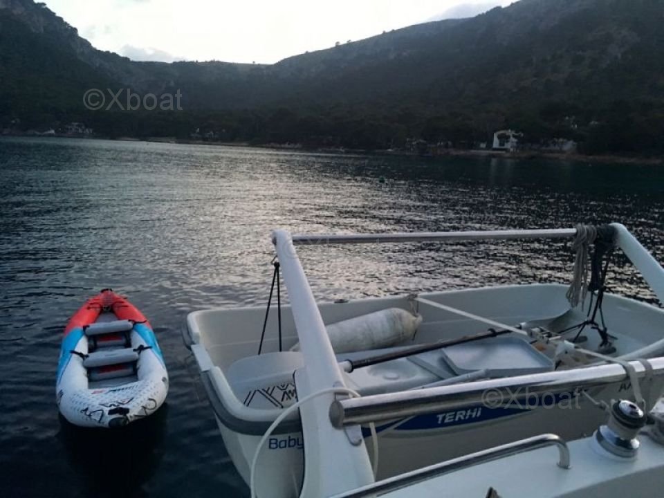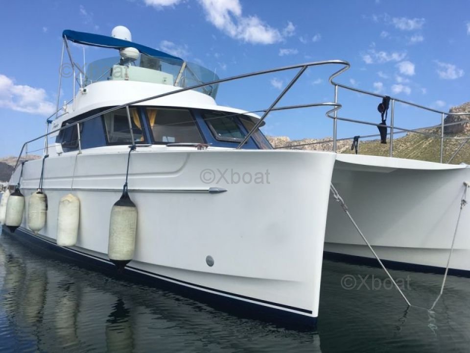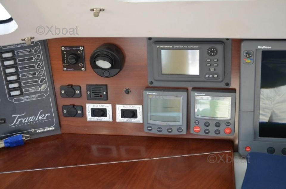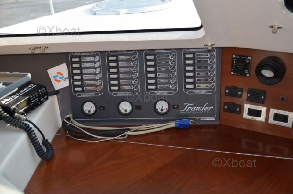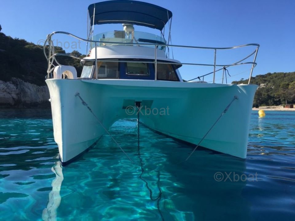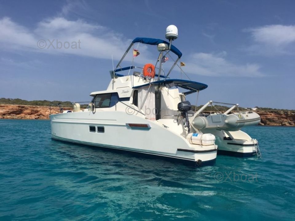 Grâce à sa construction robuste en polyester renforcé de fibres de verre, ce catamaran est à la fois léger et résistant, ce qui en fait un choix idéal pour les navigations en eaux peu profondes. Les moteurs de 20 CV chacun assurent une propulsion fiable et économique, permettant de naviguer à une vitesse de croisière confortable de 7 n?uds.