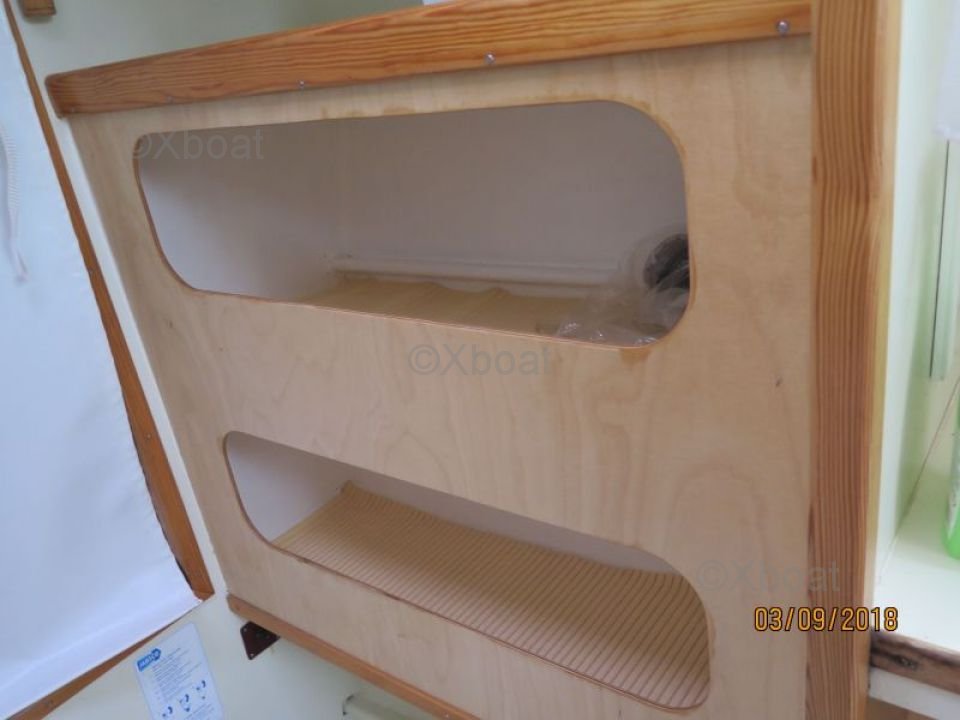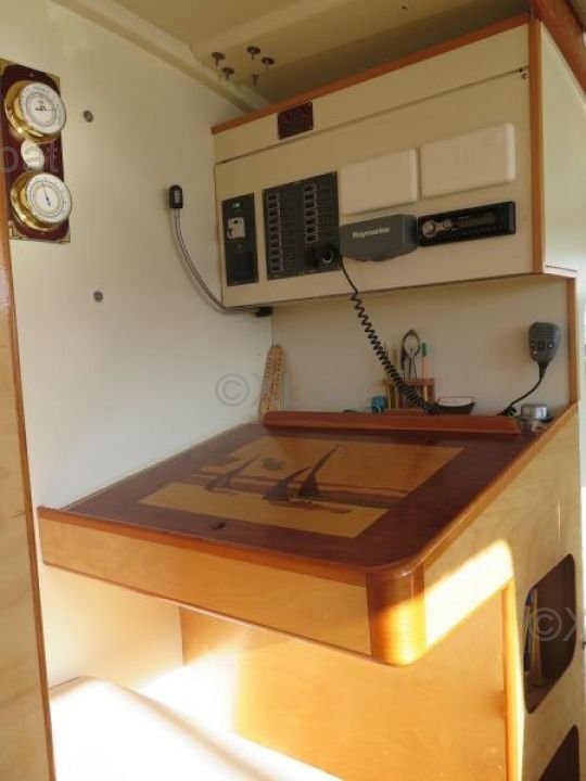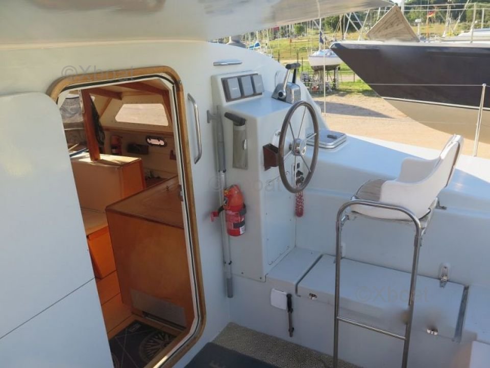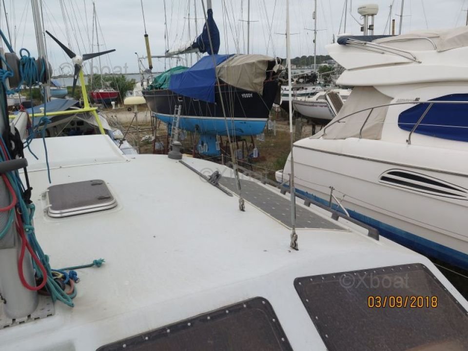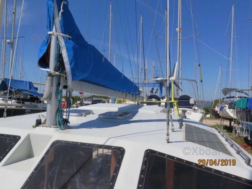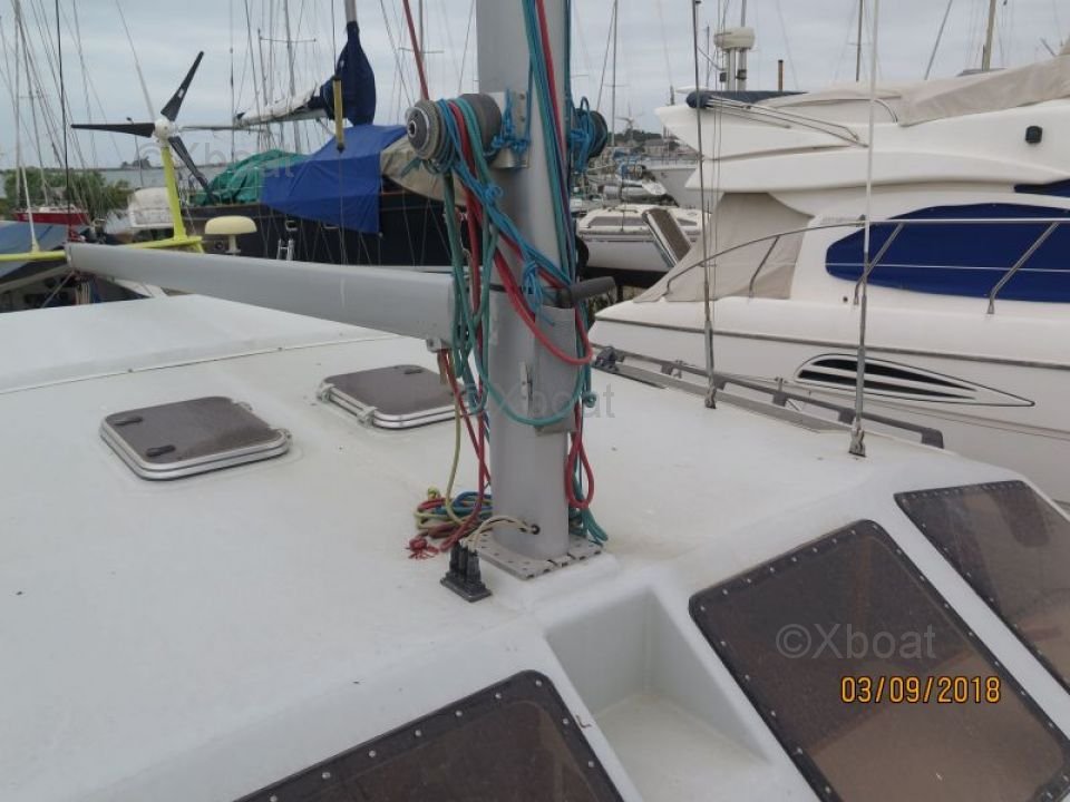 Ce catamaran est équipé d'une quille relevable, permettant une navigation dans des eaux peu profondes. Sa voilure bien conçue permet des performances optimales, que ce soit pour des croisières côtières ou des traversées océaniques.