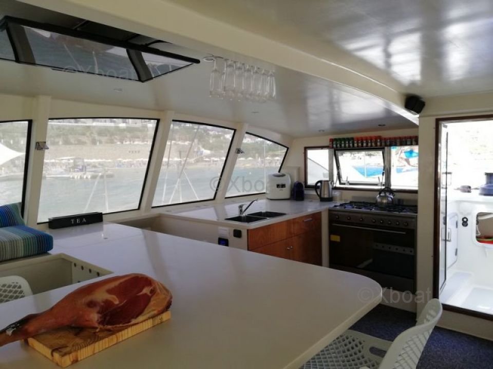 Confort : L'intérieur du DH 550 Catamaran est conçu pour offrir un maximum de confort. Les cabines sont spacieuses et bien ventilées, avec des lits doubles confortables. Les salles de bain sont équipées de douches et de toilettes électriques. La cuisine est bien équipée, avec un réfrigérateur, un congélateur et une cuisinière à gaz.