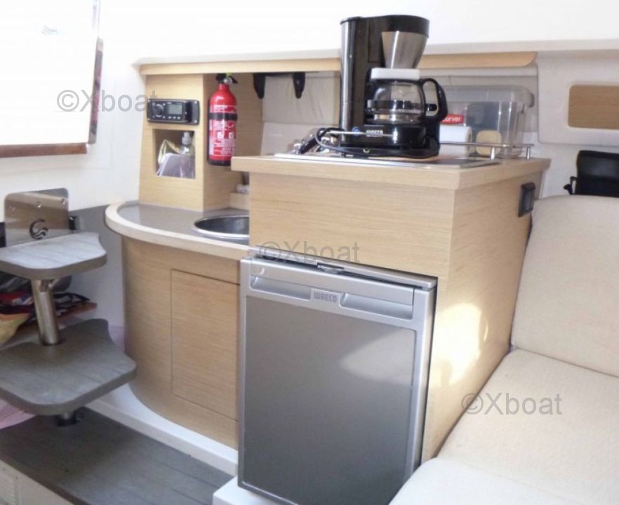 Aménagement intérieur : L'intérieur du Capelli Cap 28 WA est spacieux et bien conçu, avec une cabine principale offrant deux couchages, une cuisine équipée et une salle de bain complète. Le salon est lumineux grâce à de grandes fenêtres, offrant une vue imprenable sur l'extérieur.