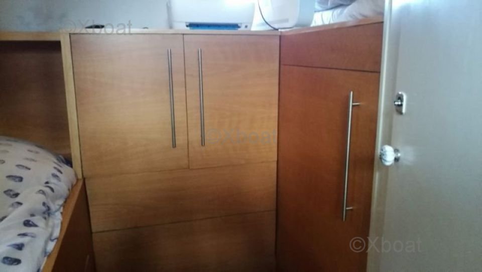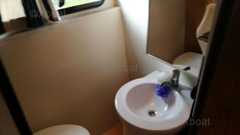 Motorisation: Ce bateau est généralement équipé de moteurs diesel puissants, souvent des moteurs Volvo Penta ou Yanmar, offrant une puissance de 2 x 225 chevaux. Ces moteurs garantissent une performance optimale et une consommation de carburant efficace.