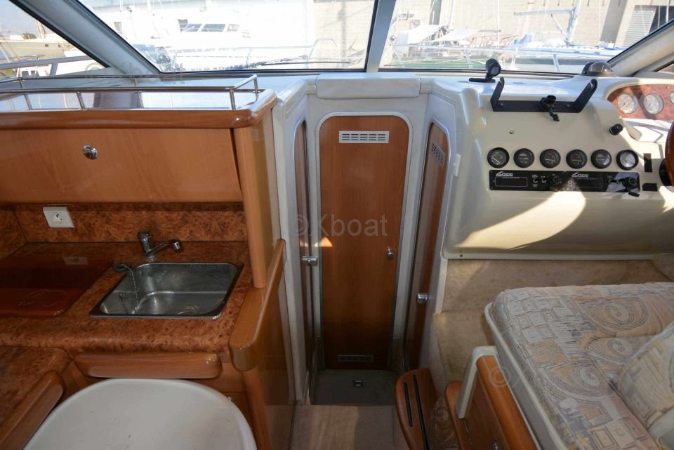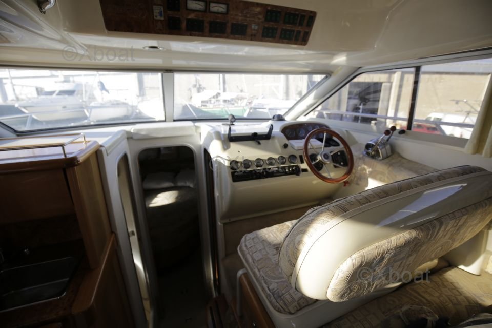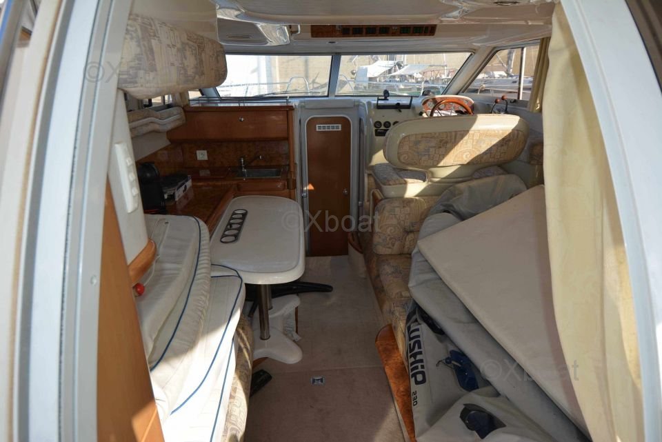 Sécurité et navigation : Le Sealine 330 Statesman est équipé de nombreux dispositifs de sécurité, y compris des radeaux de sauvetage, des gilets de sauvetage et des extincteurs. Le poste de pilotage est bien équipé avec des instruments de navigation modernes, tels qu'un GPS, un sonar et un radar.