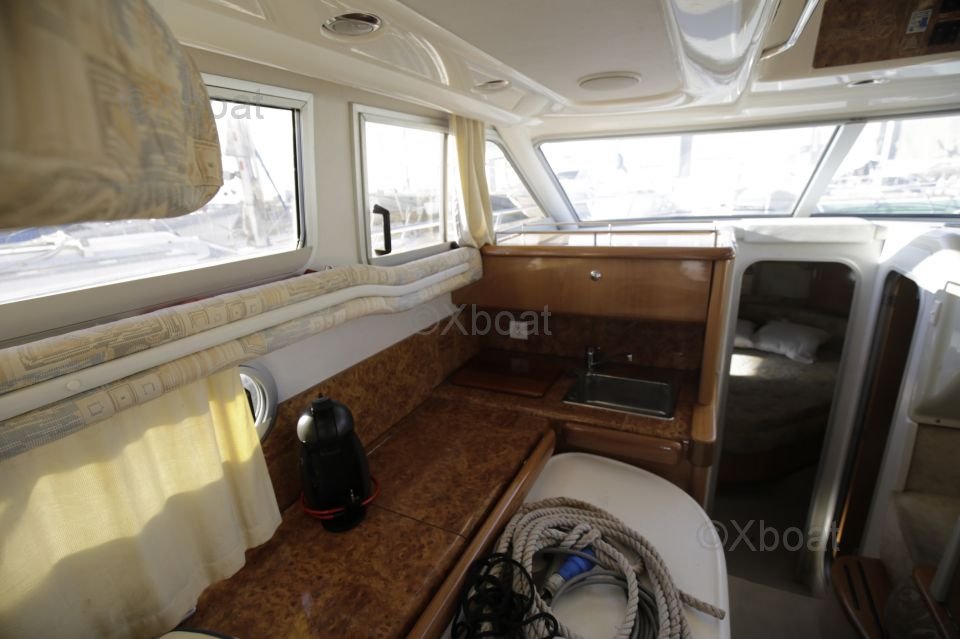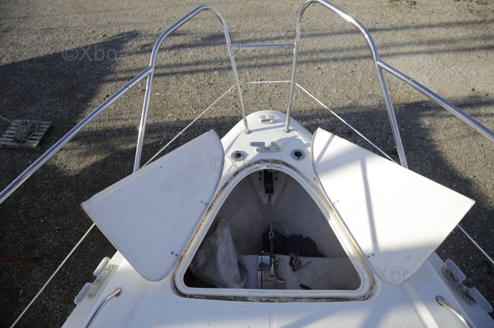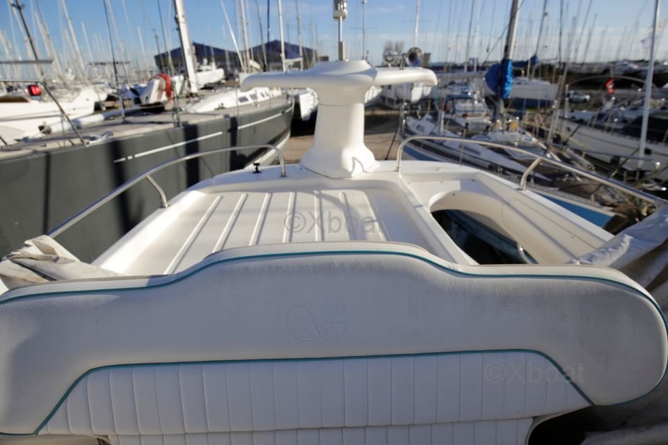 Équipements de pont : Le pont est spacieux et bien conçu, avec une zone de cockpit protégée, idéale pour les repas en plein air. Le cockpit est équipé de banquettes confortables et d'une table à manger. À l'avant, une zone de bain de soleil offre un espace de détente supplémentaire.