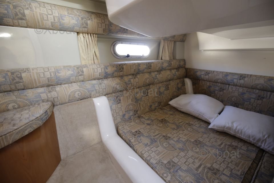 Aménagement intérieur : Le bateau dispose de deux cabines doubles, offrant un espace de couchage confortable pour jusqu'à 4 personnes. La cabine principale est équipée d'un lit double et d'une salle de bain privée. La cabine avant dispose également d'un lit double et d'un accès direct à une salle de bain.