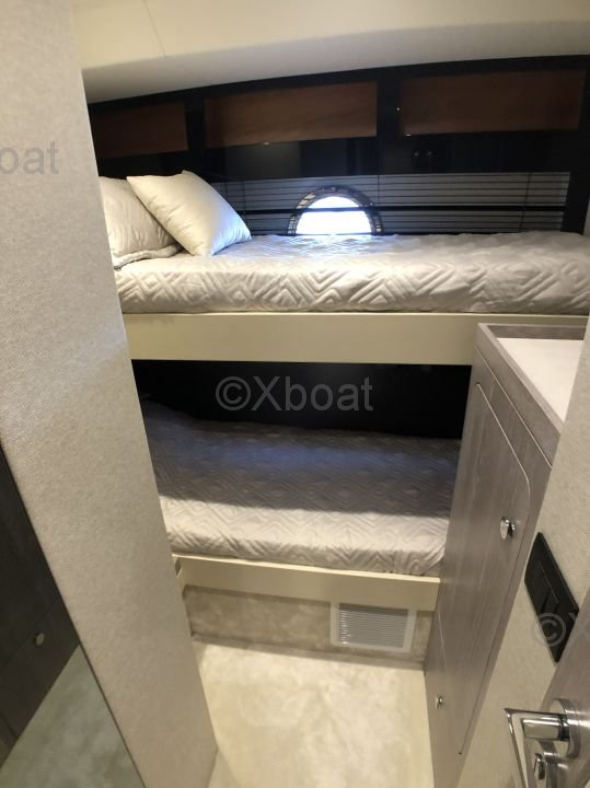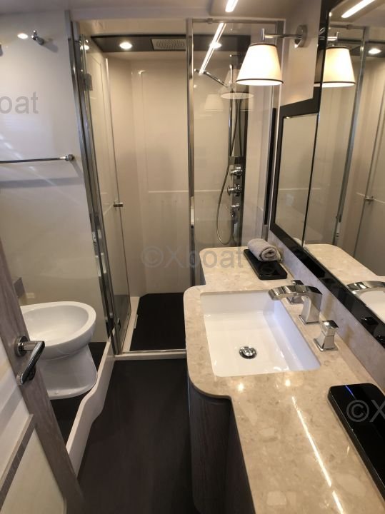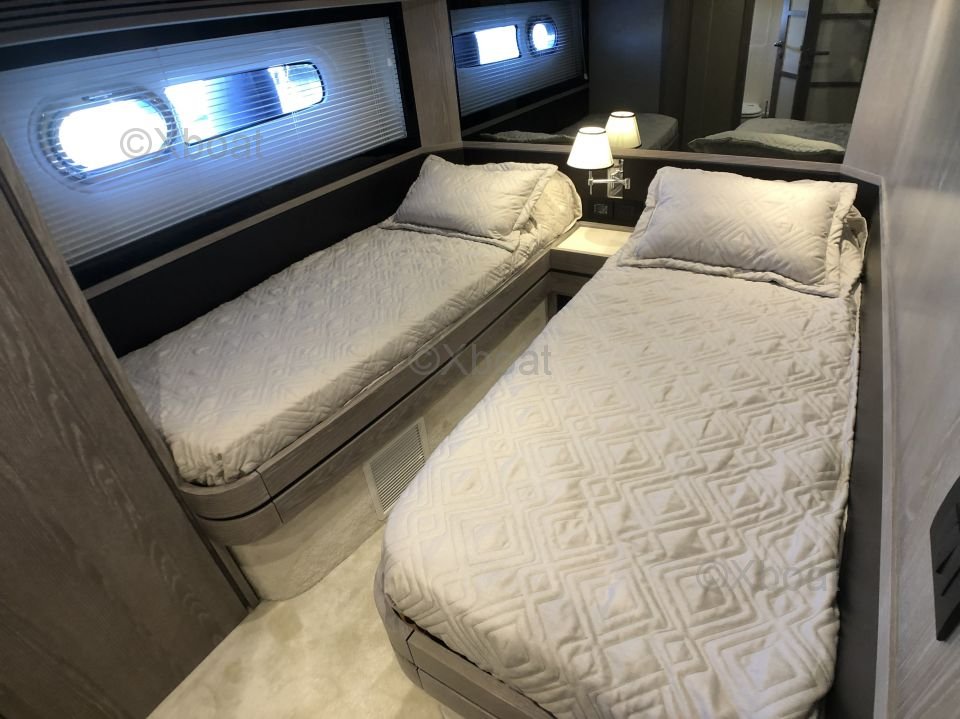 Espaces intérieurs : Le yacht dispose de quatre cabines, dont une suite propriétaire à l'avant, deux cabines doubles et une cabine simple pour l'équipage. Les intérieurs sont finis avec des matériaux de haute qualité, offrant un confort et une esthétique raffinés.