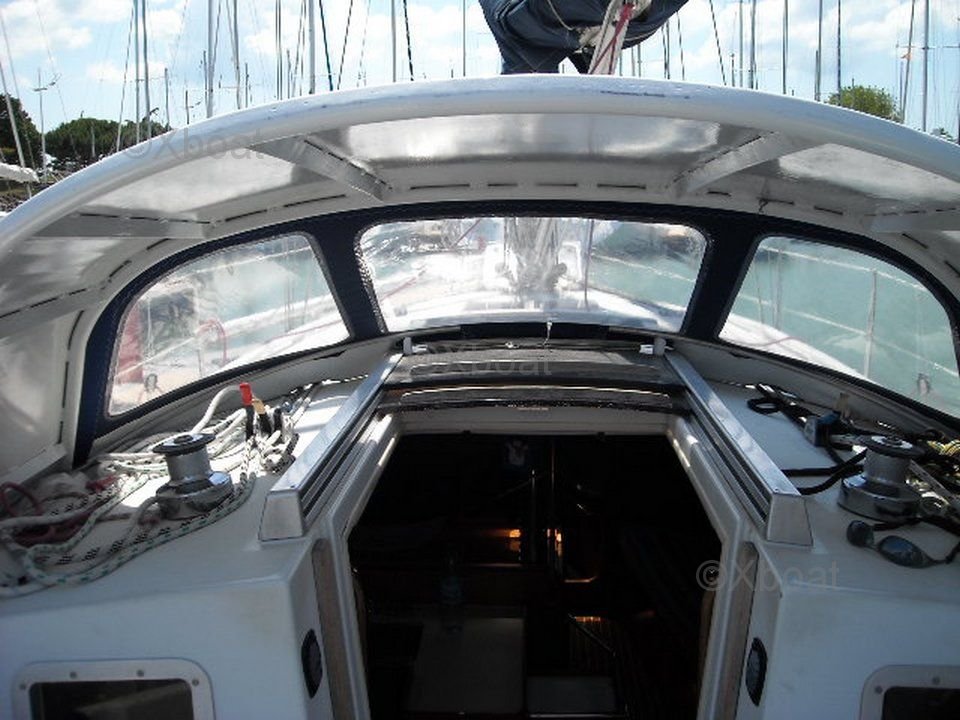 À l'intérieur, le First 375 offre un espace de vie confortable avec une grande cabine principale, une cuisine bien équipée et des espaces de rangement optimisés. Les finitions sont soignées et les matériaux utilisés sont de haute qualité, assurant une durabilité et un confort optimal.