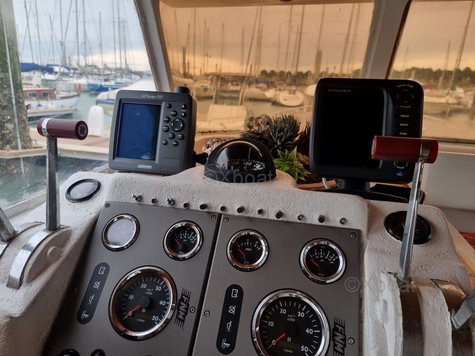 Ce bateau d'occasion est équipé de deux moteurs de 2 x 250 Cv, récemment installés. Avec seulement 105 heures de navigation, ils sont en excellent état et prêts à vous offrir des performances optimales.