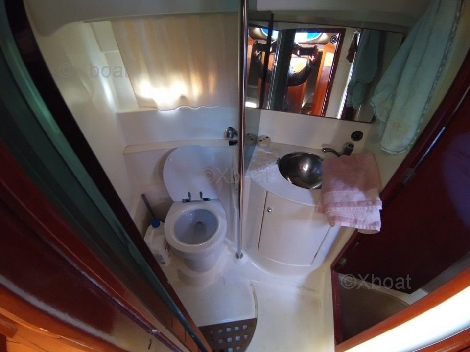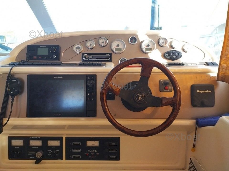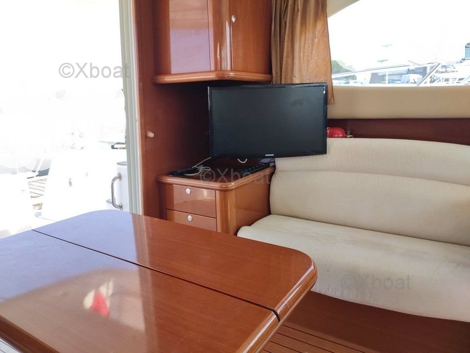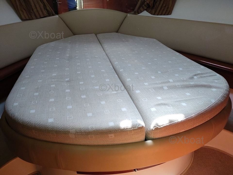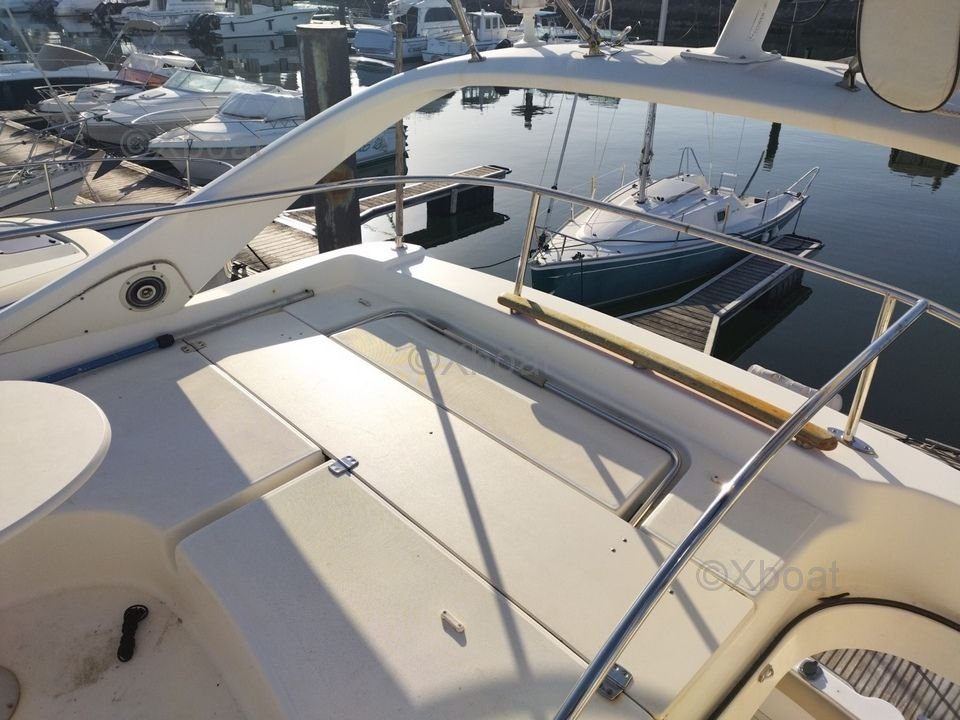 Confort et équipement : Le bateau dispose de deux cabines doubles, une salle de bain avec douche, et un salon spacieux avec une cuisine équipée. Le flybridge offre une vue panoramique et un espace de vie supplémentaire, idéal pour les journées ensoleillées.