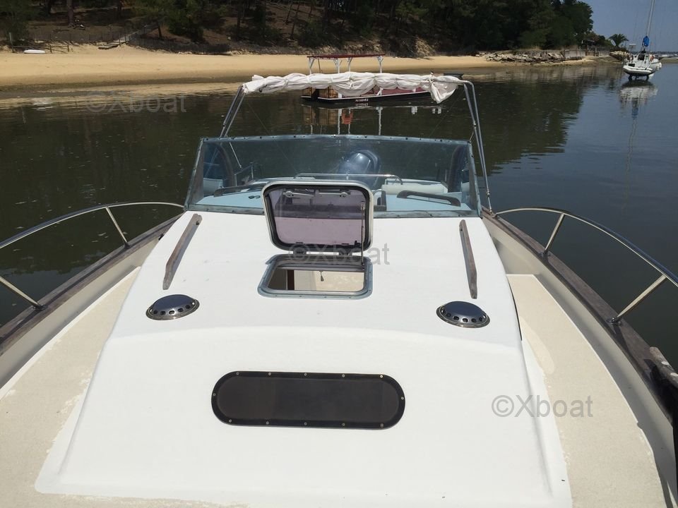 Confort et équipements : Le cockpit spacieux est conçu pour offrir un maximum de confort, avec des sièges rembourrés et un tableau de bord ergonomique. Le bateau dispose également d'un espace de vie intérieur avec une cabine confortable, un coin cuisine et des espaces de rangement abondants. Les équipements de sécurité, comme les gilets de sauvetage et les extincteurs, sont également présents.