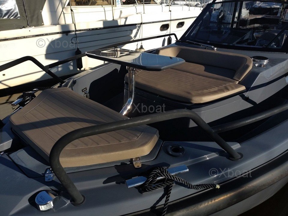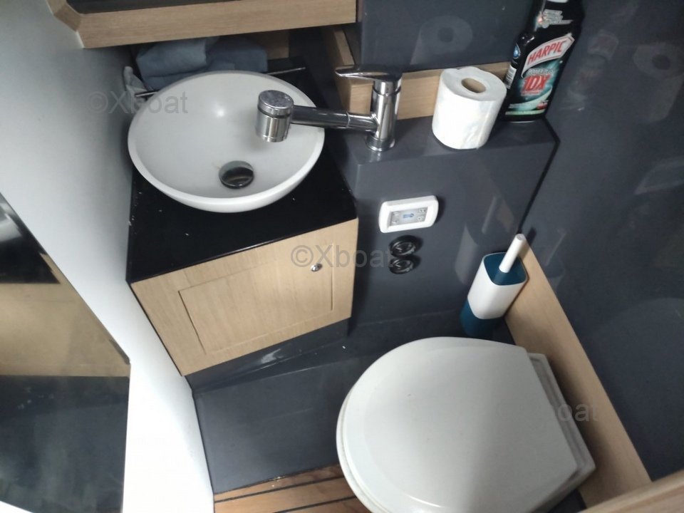 À l'intérieur, le bateau offre un espace de vie spacieux et bien aménagé. Le salon est équipé de sièges confortables et d'une table à manger, tandis que la cuisine est moderne et fonctionnelle. Les cabines sont élégamment décorées et offrent un espace de rangement suffisant.