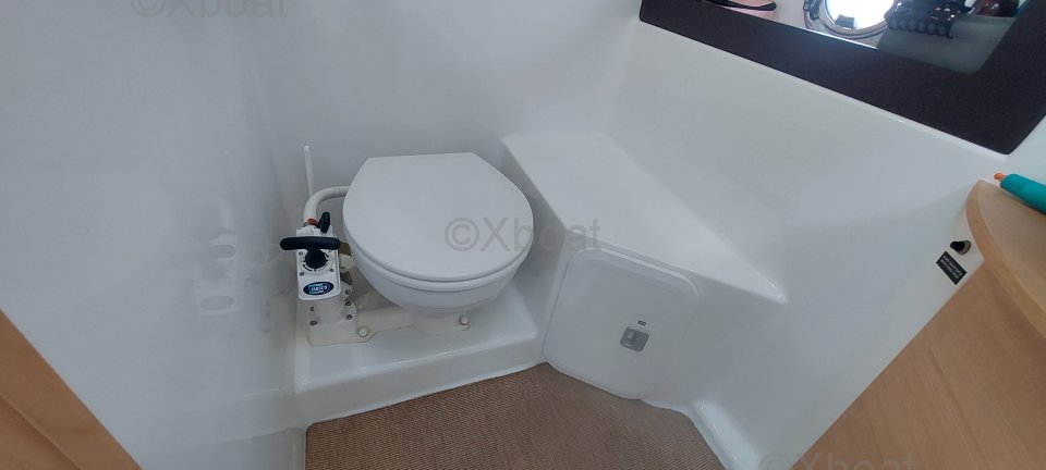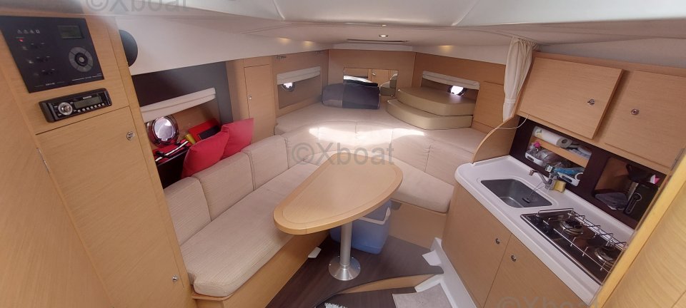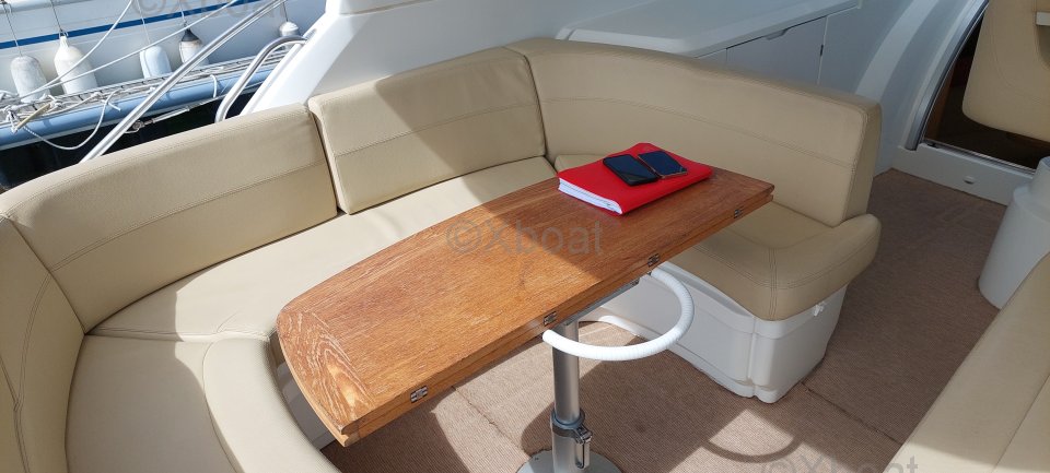 Aménagement extérieur : Le hard top offre une protection contre les intempéries tout en permettant une circulation aisée sur le pont. Le cockpit est bien protégé et dispose de sièges confortables, idéaux pour les longues journées en mer. Le bateau est également équipé d'une plateforme de bain avec échelle, facilitant l'accès à l'eau.