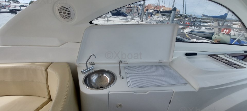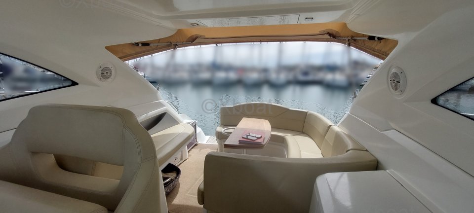 Aménagement intérieur : L'intérieur du Monte Carlo 32 Hard Top est conçu pour offrir un maximum de confort. Il dispose de deux cabines doubles, une salle de bain avec douche, et un salon spacieux. Les finitions en bois de haute qualité et les équipements modernes contribuent à créer une atmosphère chaleureuse et accueillante.