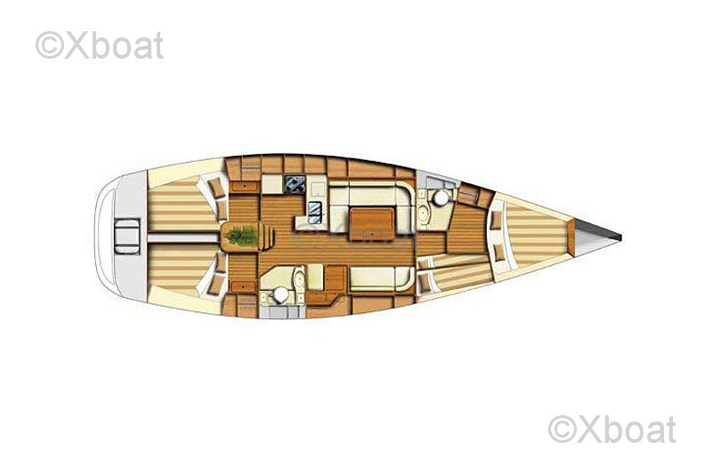 Ce voilier de croisière est conçu pour offrir une belle stabilité en mer et une bonne performance dans une large gamme de conditions. Il est bien équilibré, avec une quille relativement profonde, ce qui permet une meilleure manœuvrabilité, particulièrement en vent fort. La construction est solide et la finition intérieure de qualité.