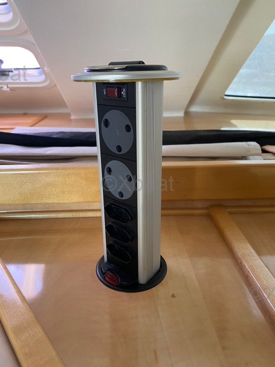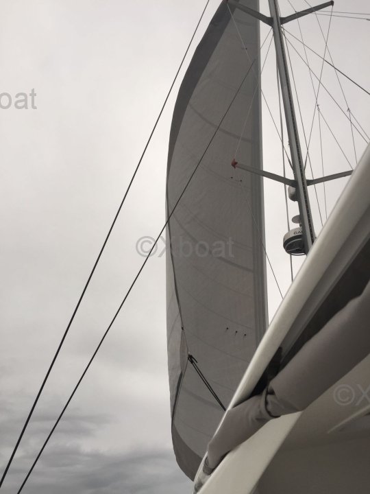 - Détails voiles : Grand-voile entièrement lattée sur système BattCar Lazy bag/Lazy jack Génois sur enrouleur électrique ProFurl Code Zero sur emmagasineur de voile souple Winchs primaires électriques pour une manipulation sans effort