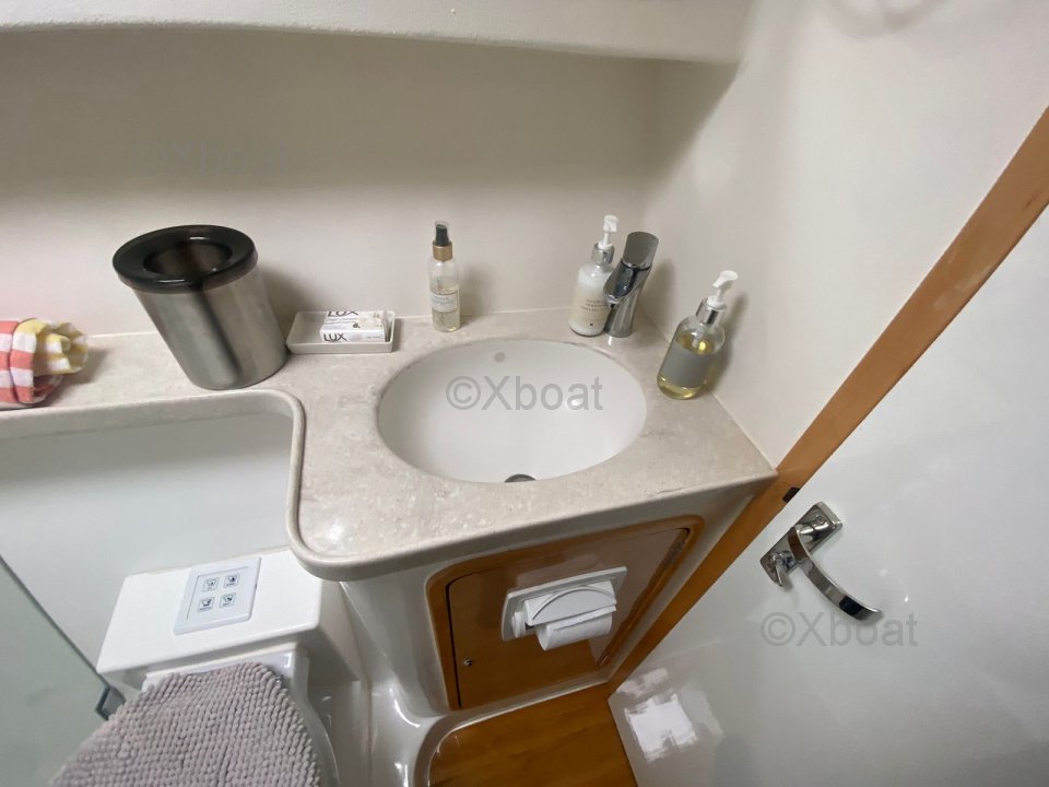 La coque tribord abrite deux cabines invités.