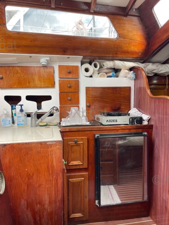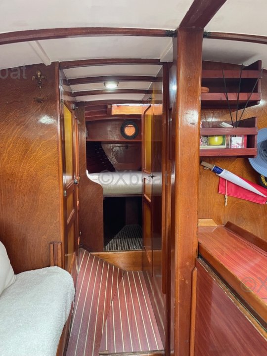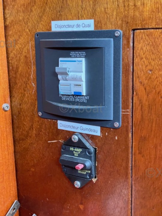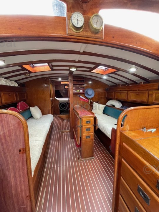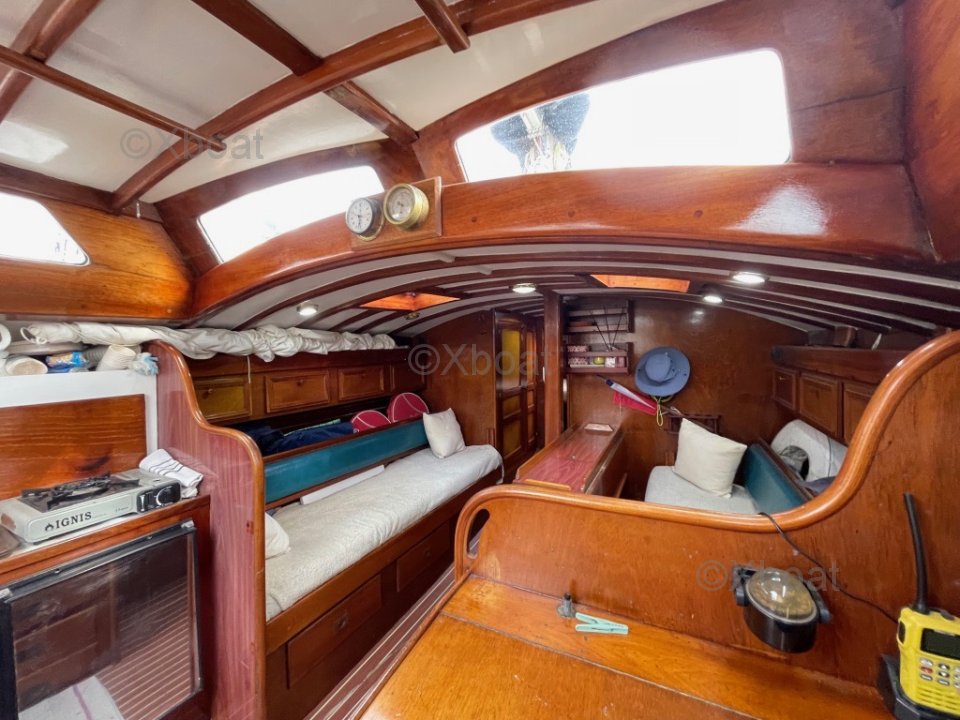 Au niveau structurel, l'ensemble coque/pont est renforcé par des cloisons intérieures en C.P marine de 15mm d'épaisseur. En 2018, le bateau a été équipé d'une commande électrique pour le moteur Yanmar de 30CV, ce qui rend les manœuvres de port extrêmement douces et précises. Une électronique Furuno de qualité a été installée : sondeur, centrale de vent, pilote automatique directement sur secteur de barre. La coque est en polyester armé selon les spécifications du Lloyd's.