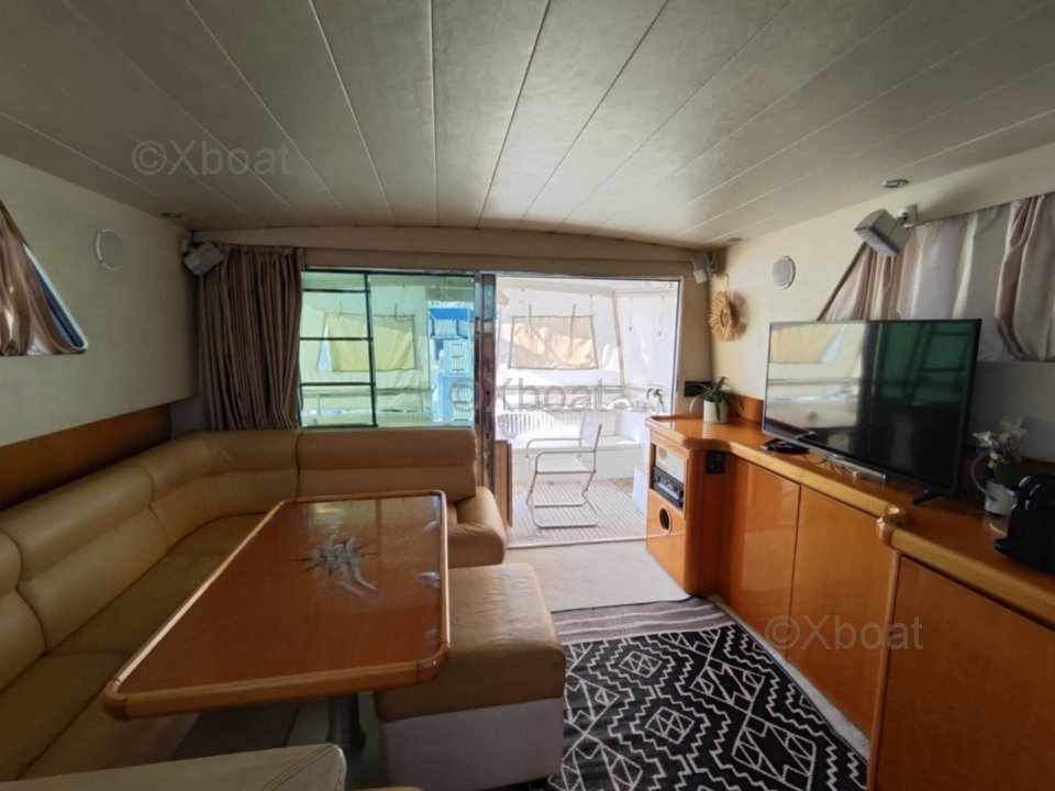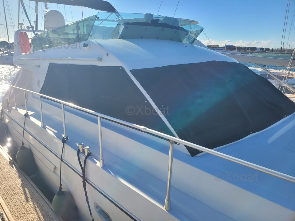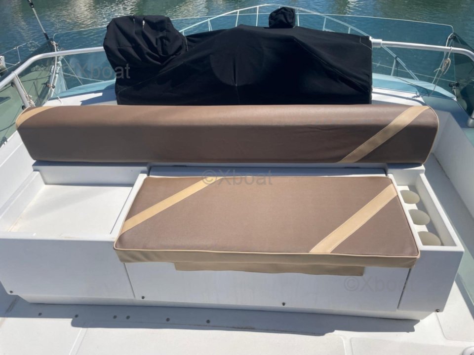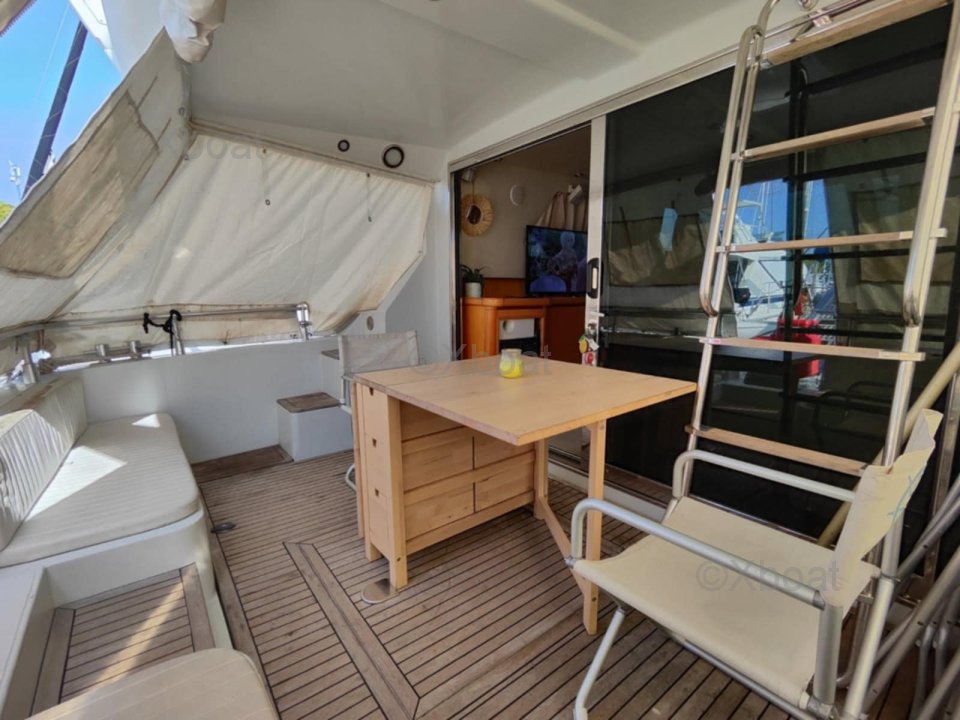 Le flybridge est particulièrement spacieux en comparaison avec les bateaux de la même gamme et de la même époque.