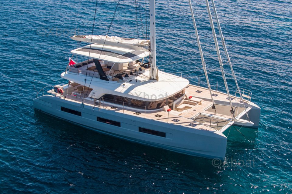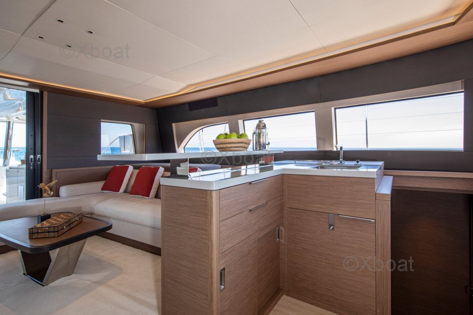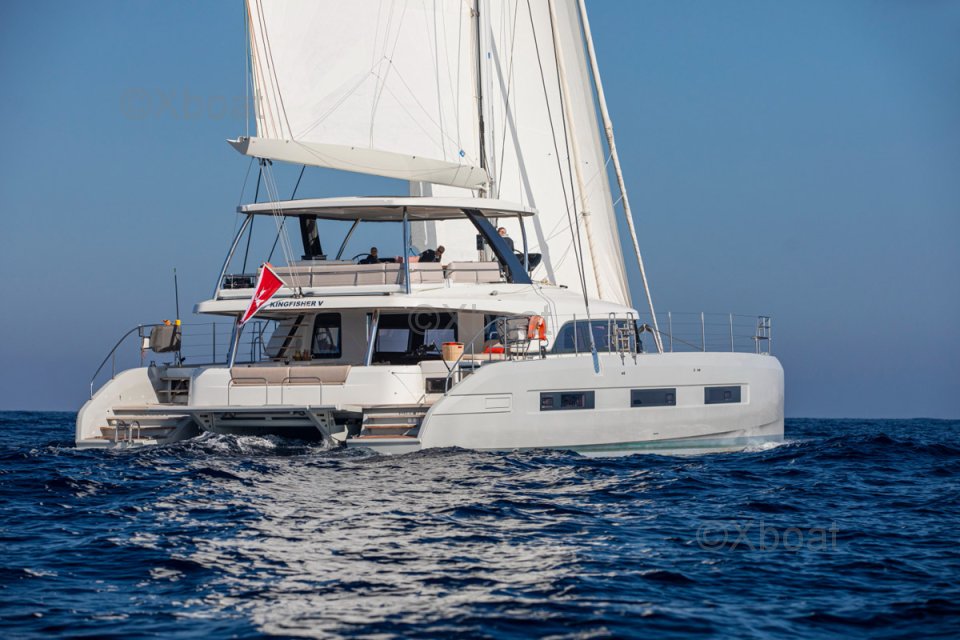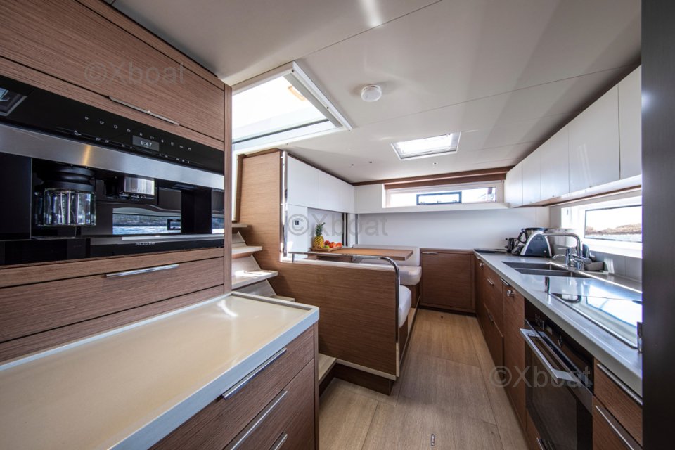 Avec ses quartiers équipage dédiés, ce Lagoon Sixty 5 est un catamaran dernière génération, idéal pour le voyage ou le charter.