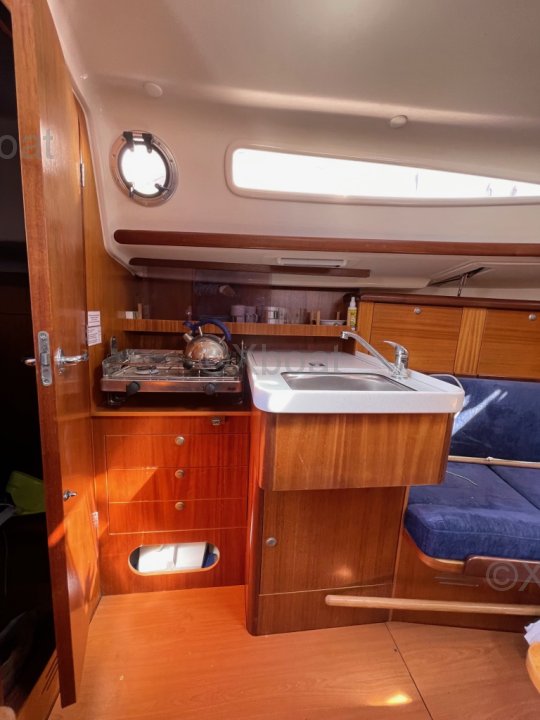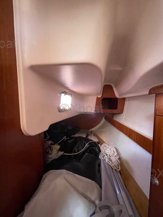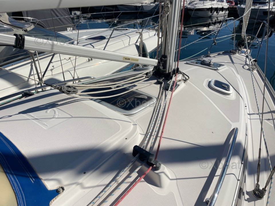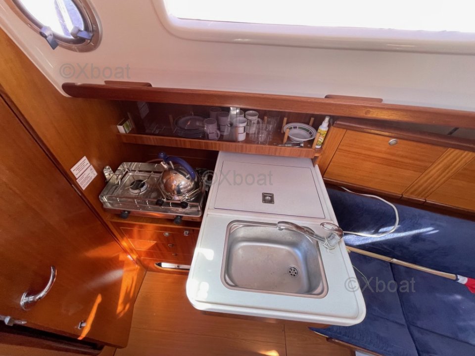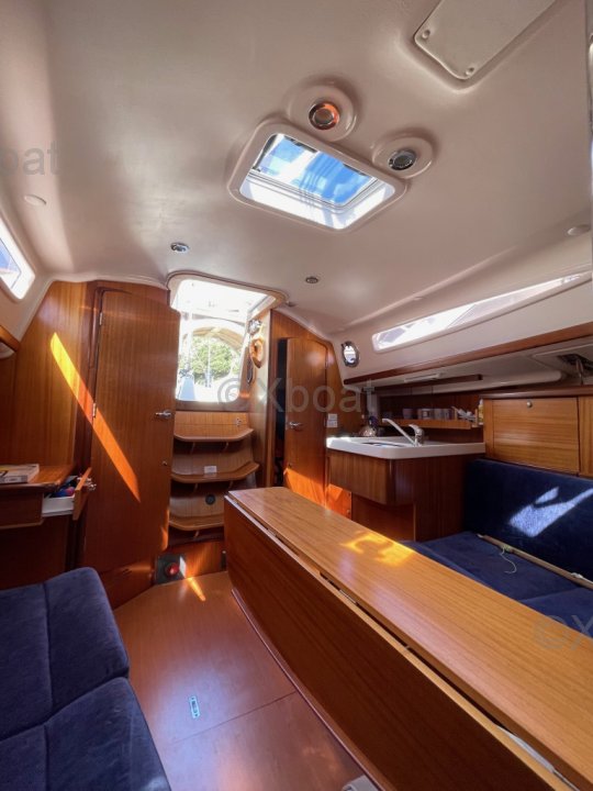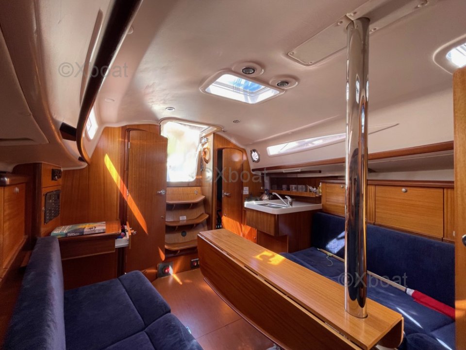 Intérieur : Lumineux et fonctionnel, beaucoup de rangements. Points forts : construction solide, Bon compromis habitabilité / maniabilité. Facile pour équipage réduit, plan de voilure simple et efficace pour croisière familiale.