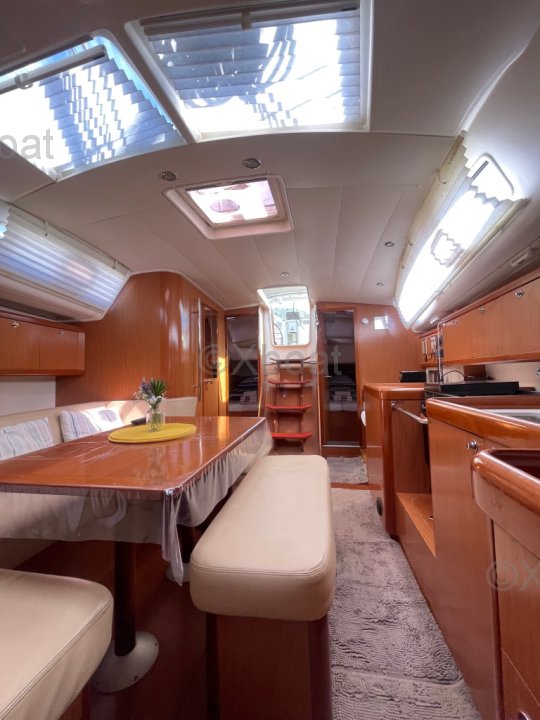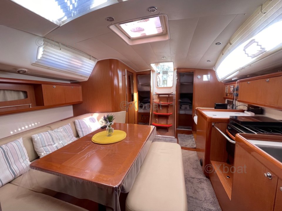 Nous mettons en vente notre voilier Océanis 40, mis à l’eau en 2009. Ce bateau a été soigneusement entretenu, régulièrement amélioré et il est aujourd’hui parfaitement prêt à naviguer, que ce soit pour la croisière côtière ou la navigation hauturière. C’est un voilier fiable et confortable, pouvant accueillir jusqu'à 12 passagers ; idéal pour qui souhaite vivre à bord ou partir en grande croisière en toute autonomie. Voilure ; Grand-voile lattée, bon état ; Genois sur enrouleur bon état . Aménagements intérieurs : 3 cabines / 6 à 8 couchages , carré spacieux, lumineux et convivial, composé d'un grand canapé pouvant accueillir facilement 6 personnes, cuisine équipée : 1 four électrique, 1 four gaz, 1 plaque gaz, 1 plaque électrique, frigo, 2 éviers ; 2 Salles d’eau : WC marin + douche fonctionnelle, en excellent état, Équipements & électronique : 2 barres à roue, pilote automatique + Wind Pilot GPS traceur (NMEA multiplexer, Wi-Fi, infos AIS sur téléphone), Sondeur, VHF, AIS (récepteur, émetteur), Guindeau électrique ; Girouette électronique, Bimini intégral gris-beige neuf (2025) : capote, bimini, joues et raccords ; Pompes de cale (à membrane + avec flotteur intégré) ; 2 Cuves à eau d'un total de 360L ; Climatisation d'origine réversible 220 V ; passerelle en carbone ; hauts parleurs extérieurs ; Entretien & travaux récents : carénage & antifouling réalisés en 2024 et 2025, jamais talonné, varangues saines, TVA acquittée.