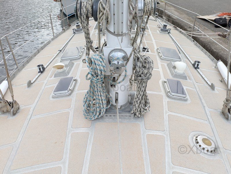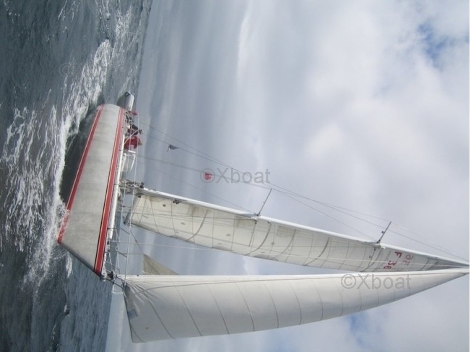 - Détails voiles : - grand voile lattée de 45m2 ( +/- 20 ans en état d'usage bon) - génois sur enrouleur avec bande UV et chaussette de protection surface de 75 m2 (dacron très épais +/- 10 ans env. état d'usage très bon) - trinquette à endrailler sur étai largable inox + tourmentin (état d'usage très bon) - 1 spinnaker symétrique (état d'usage correct) - 1 spinnaker asymétrique (état d'usage bon) - gréement dormant remplacé en 2010 (tous les haubans) - l'étai avant a été remplacé en 2012 - pataras réglable diamètre 12mm - haubans diamètre 10 mm - 3 tangons - mât sloop en tête de 18.50 m - 2 étages de barres de flèches - nombreux winchs à l'arrière / au cockpit central et en pied de mât C'est un bateau de course des années 1980 / Allure au près et au près serré !!