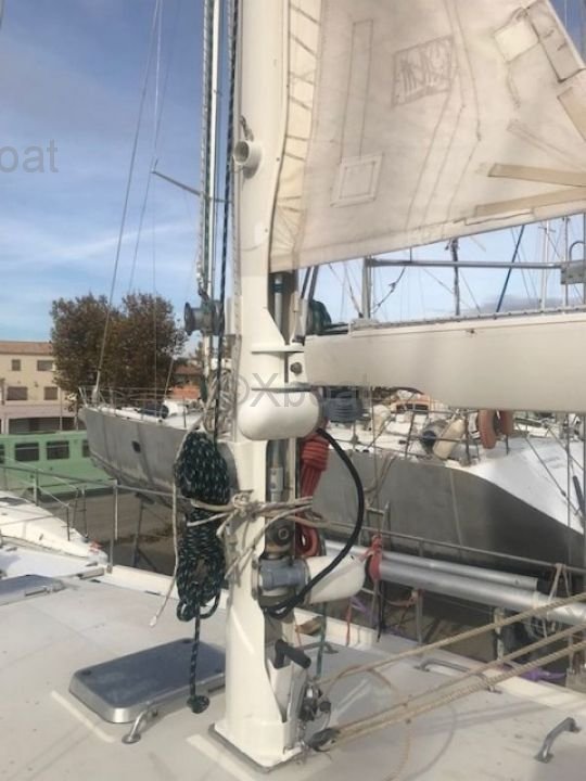Le Santorin est équipé d'un cockpit central, offrant une grande surface de vie à l'extérieur. À l'intérieur, il dispose de 3 cabines doubles et 2 salles de bain, assurant un confort optimal pour les longues croisière.