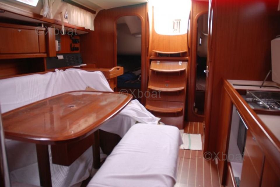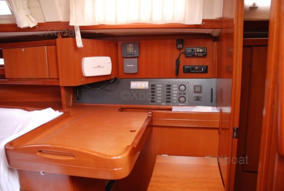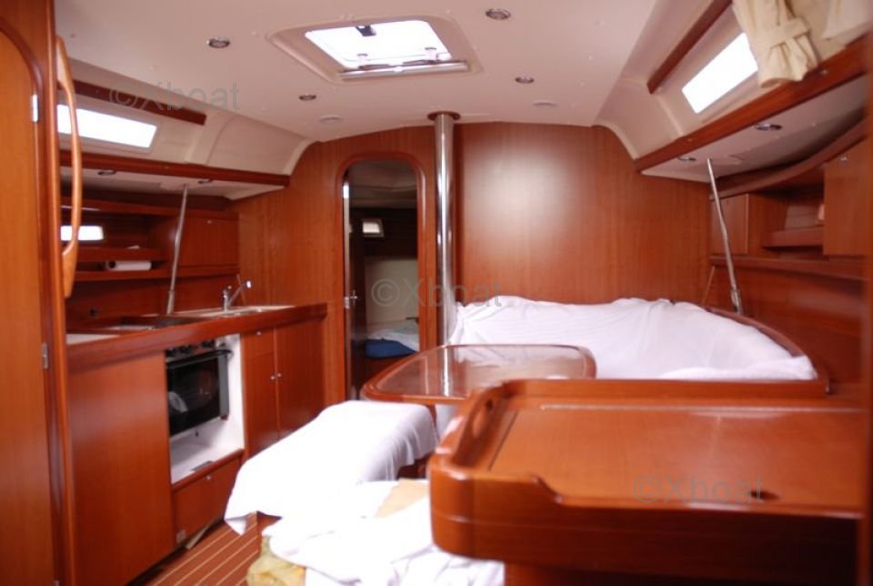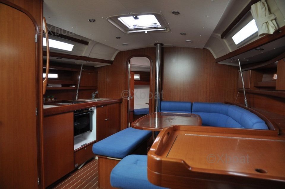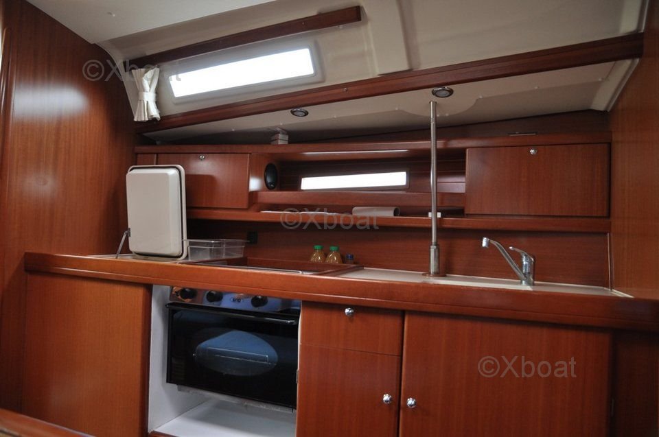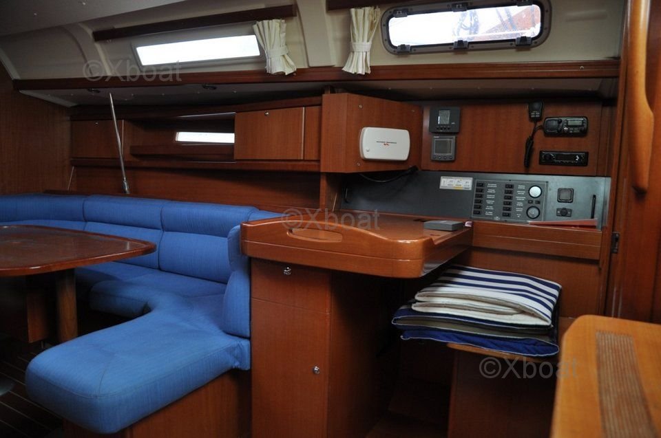 Le Dufour 365 Grand Large est équipé d'un intérieur spacieux et bien conçu, offrant jusqu'à 6 couchettes dans 3 cabines. La cuisine est fonctionnelle et bien aménagée, avec un grand plan de travail et un évier double. Le poste de navigation est ergonomique, offrant une bonne visibilité et un accès facile aux instruments de bord.